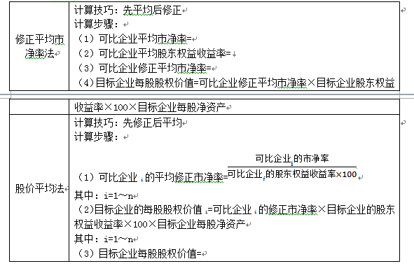 市盈率模型 (市價(jià)/凈收益比率模型) | 目標(biāo)企業(yè)股權(quán)價(jià)值=可比企業(yè)平均市盈率×目標(biāo)企業(yè)盈利 |