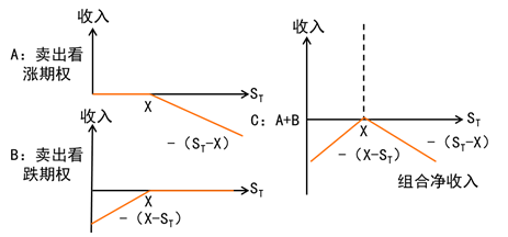 是同時出售一只股票的看漲期權(quán)和看跌期權(quán),它們的執(zhí)行價格、到期日都相同。