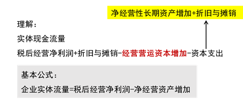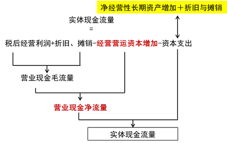 實(shí)體現(xiàn)金流量:是企業(yè)全部現(xiàn)金流入扣除成本費(fèi)用和必要的投資后的剩余部分,它是企業(yè)一定期間可以提供給所有投資人的稅后現(xiàn)金流量