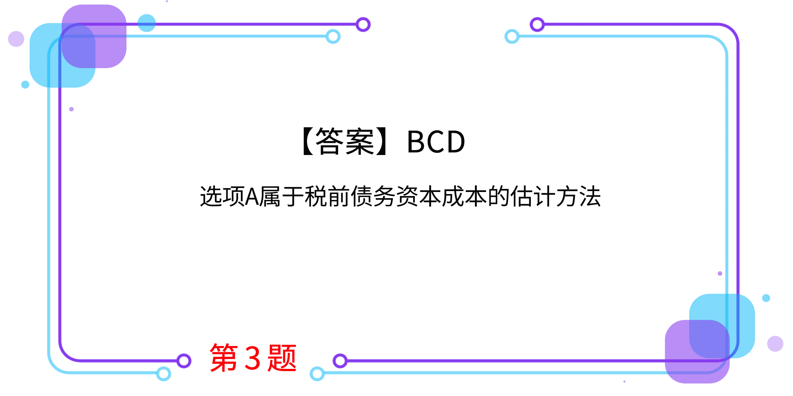 3.下列各項中可用于估計普通股資本成本的方法有( )。(2018年第Ⅱ套)