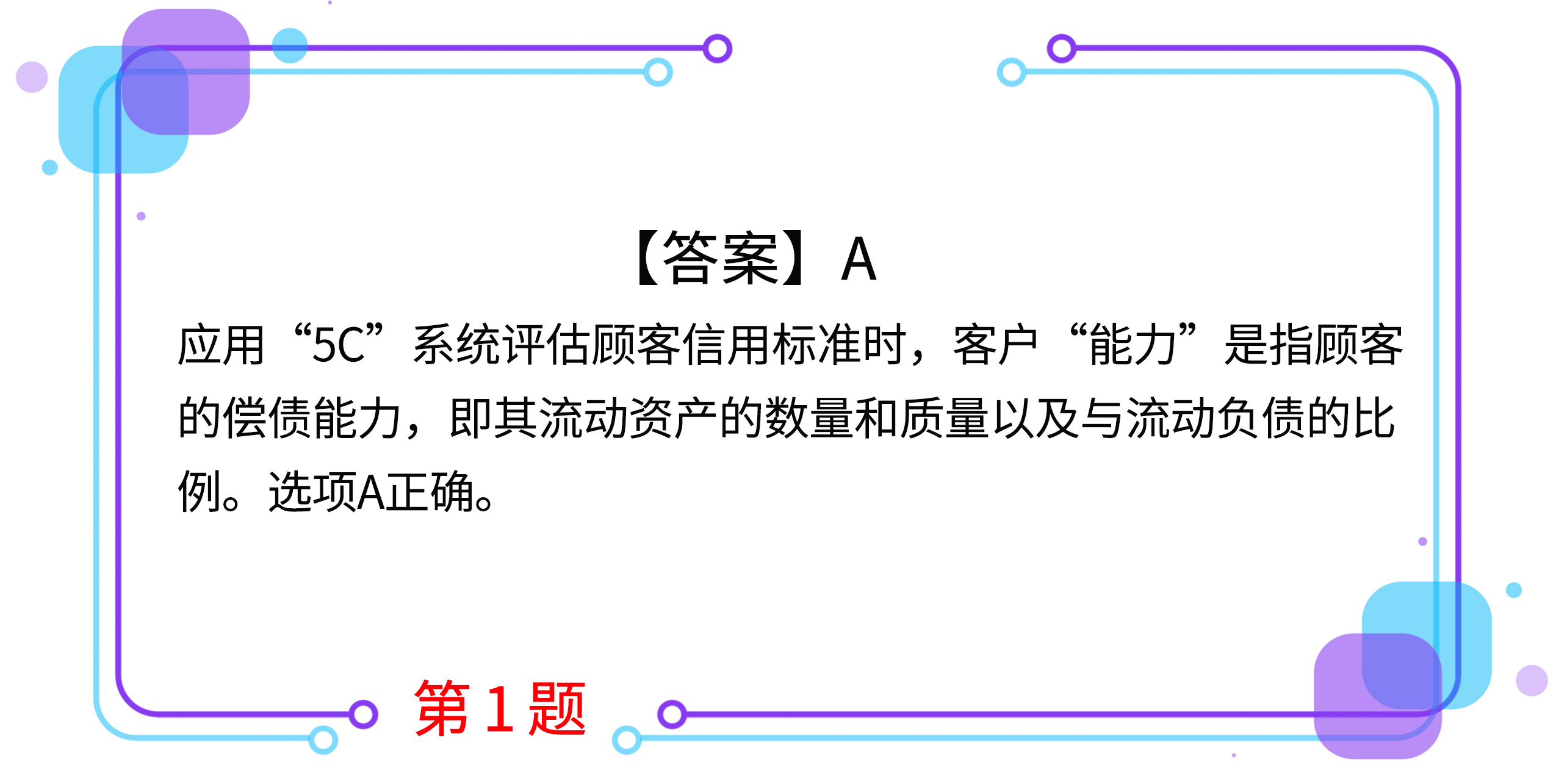 1.應(yīng)用“5C”系統(tǒng)評估顧客信用標(biāo)準(zhǔn)時,客戶“能力”是指( )。(2017年第Ⅰ套)