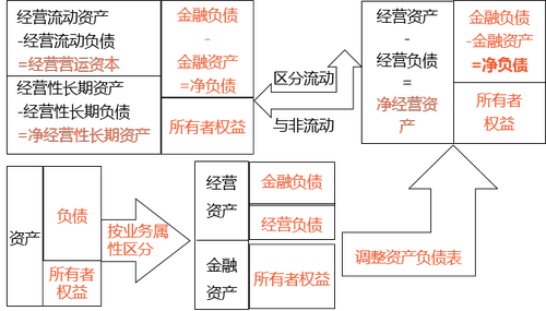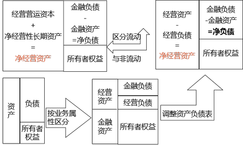 區(qū)分經(jīng)營(yíng)資產(chǎn)和金融資產(chǎn)、經(jīng)營(yíng)負(fù)債和金融負(fù)債,所有者權(quán)益不變。