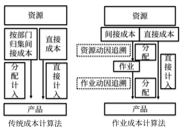 1.成本計(jì)算分為兩個(gè)階段 | 作業(yè)成本法的基本指導(dǎo)思想是,“作業(yè)消耗資源、產(chǎn)品(服務(wù)或顧客)消耗作業(yè)”。根據(jù)這一指導(dǎo)思想,作業(yè)成本法把成本計(jì)算過(guò)程劃分為兩個(gè)階段 作業(yè)成本法下,間接成本的分配路徑是: “資源→作業(yè)→產(chǎn)品” 傳統(tǒng)成本計(jì)算方法下,間接成本的分配路徑是: “資源→部門→產(chǎn)品” |