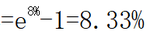 如果年復利次數(shù)非常非常多(復利期間非常非常短),在某報價利率下,年實際利率趨近于 ,我們稱之為連續(xù)復利,當報價利率是8%時,連續(xù)復利的有效年利率 | |