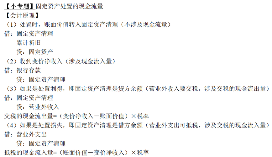 總結(jié):固定資產(chǎn)處置的現(xiàn)金流量