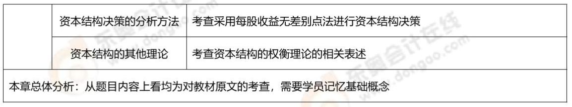 本章多考查客觀題。高頻考點(diǎn)集中在:資本結(jié)構(gòu)決策的分析方法、杠桿效應(yīng)。