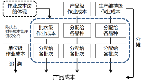 生產(chǎn)維持級作業(yè)成本 | 無法追溯到單位產(chǎn)品,并且和產(chǎn)品批次、產(chǎn)品品種無明顯關(guān)系的成本,應(yīng)首先分配到不同產(chǎn)品品種,然后再分配到成本對象(如某訂單),最后分配給單位產(chǎn)品,也可以直接依據(jù)直接人工或機器工時分配給成本對象 |