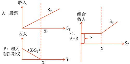 1.含義:股票加多頭看跌期權(quán)組合,是指購買1股股票,同時(shí)購入該股票1股看跌期權(quán)。
