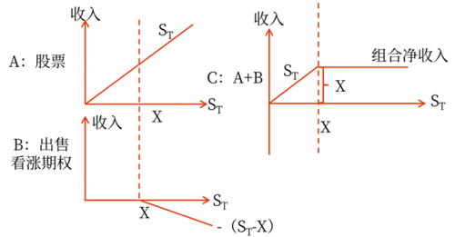 拋補(bǔ)性看漲期權(quán)組合鎖定了最高凈收入和最高凈損益:最高凈收入是執(zhí)行價(jià)格,最高凈損益=執(zhí)行價(jià)格-股票初始投資買價(jià)+期權(quán)出售價(jià)格。