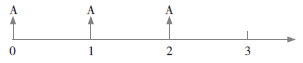 先不考慮0時點的年金A,1時點到2時點的年金在0時點的現(xiàn)值即為2期的普通年金現(xiàn)值