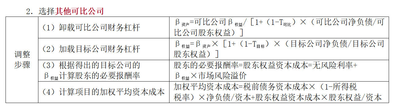 可比公司法是尋找一個(gè)經(jīng)營業(yè)務(wù)與待評價(jià)項(xiàng)目類似的上市公司,以該上市公司的β值作為待評價(jià)項(xiàng)目的β值。