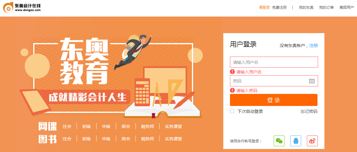 ①在官網(wǎng)下單后,直接輸入賬號密碼,進入東奧“學員中心”。