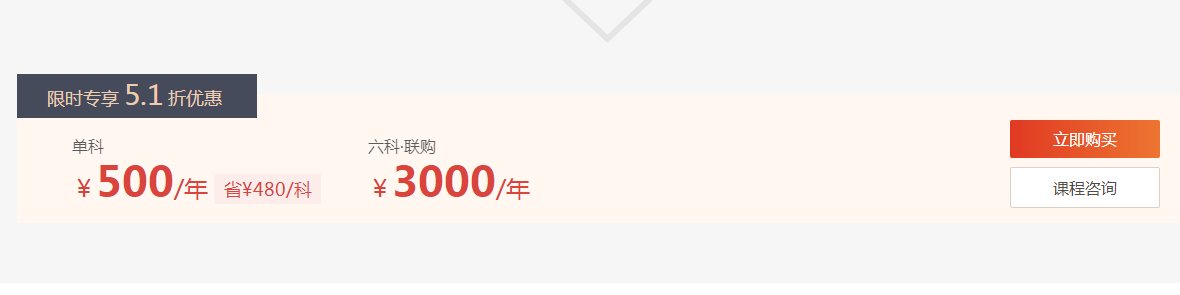 逆襲速成班單科售價為980元/年,六科聯(lián)購價為5880元/年。東奧為了回饋廣大學(xué)員,特推出優(yōu)惠活動。即日起,立享逆襲速成班享受5.1折優(yōu)惠,單科僅售500/年,六科聯(lián)購僅售3000元/年。立享優(yōu)惠>>>