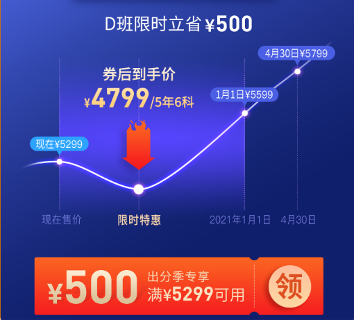 雙輪基礎(chǔ)班為B、C、D班專享班次。購D班即可享有A+B+C+逆襲班+真題班全部5大班次課程,快人一步享受雙輪基礎(chǔ)班課程,現(xiàn)在點擊課程詳情,還可以領(lǐng)取專屬優(yōu)惠券,快快行動起來吧!1月1日即將調(diào)價,小伙伴們不要再猶豫了,以免錯過優(yōu)惠哦~