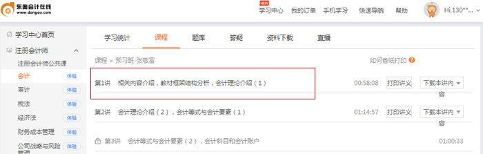 第二步:點擊注冊會計師,選擇想要學習的科目和喜愛的老師。