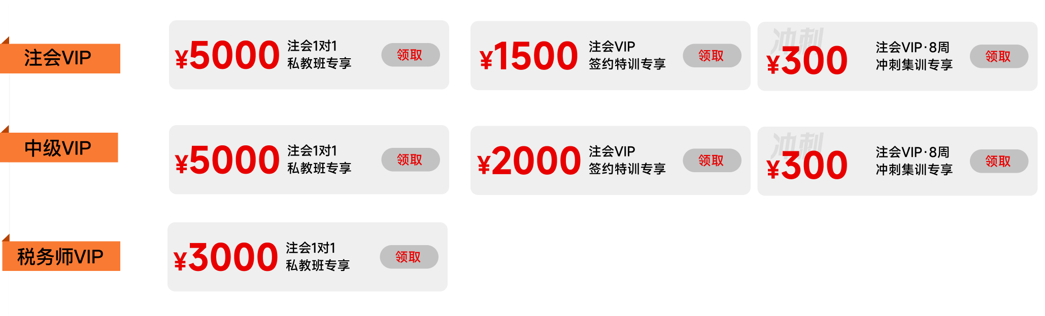 中注稅B、C、D三大班次及各類VIP課程均可領(lǐng)取好券優(yōu)惠,最多比平日多省1600元!