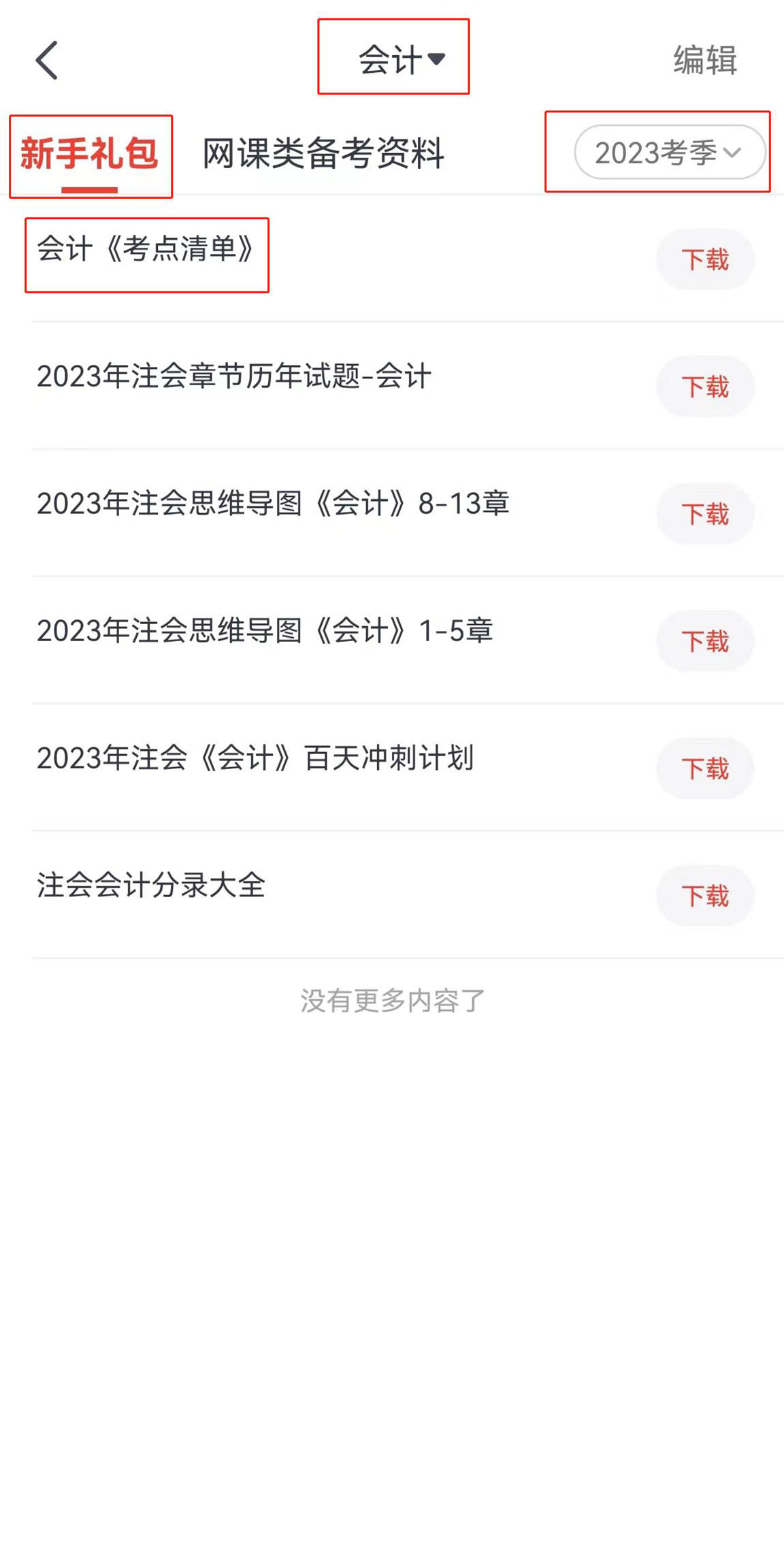 步驟三:選擇對應(yīng)科目及年份,在新手禮包下方找到“《考點(diǎn)清單》”并點(diǎn)擊下載!