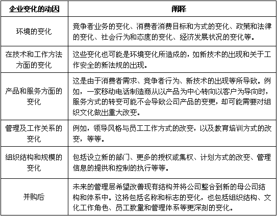 在企業(yè)中,隨著時(shí)間的流逝,將會(huì)發(fā)生一些變化。變化可能來(lái)自外部環(huán)境或內(nèi)部環(huán)境。大多數(shù)情況下,以下幾種變化可能會(huì)成為公司戰(zhàn)略變革的主要?jiǎng)右颍?/P>