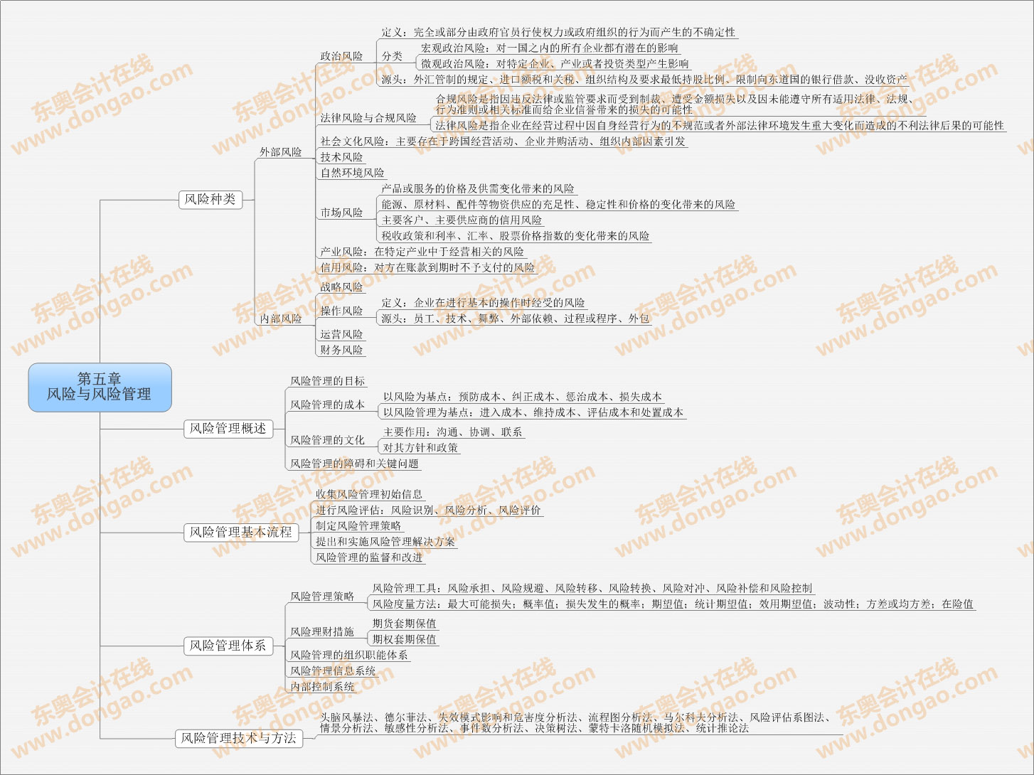 【東奧小編】2014年注冊(cè)會(huì)計(jì)師考試目前處于基礎(chǔ)備考階段,注會(huì)知識(shí)點(diǎn)繁雜細(xì)碎,想要全面掌握注會(huì)各科目的知識(shí),需要科學(xué)高效的學(xué)習(xí)方法,思維導(dǎo)圖正是一種非常適合注會(huì)復(fù)習(xí)的學(xué)習(xí)方法,正確利用思維導(dǎo)圖,不僅能使自己積極進(jìn)行知識(shí)點(diǎn)總結(jié),形成清晰的思路,還能對(duì)知識(shí)點(diǎn)進(jìn)行快速查漏補(bǔ)缺。以下是2014注會(huì)《公司戰(zhàn)略與風(fēng)險(xiǎn)管理》第五章風(fēng)險(xiǎn)與風(fēng)險(xiǎn)管理思維導(dǎo)圖: