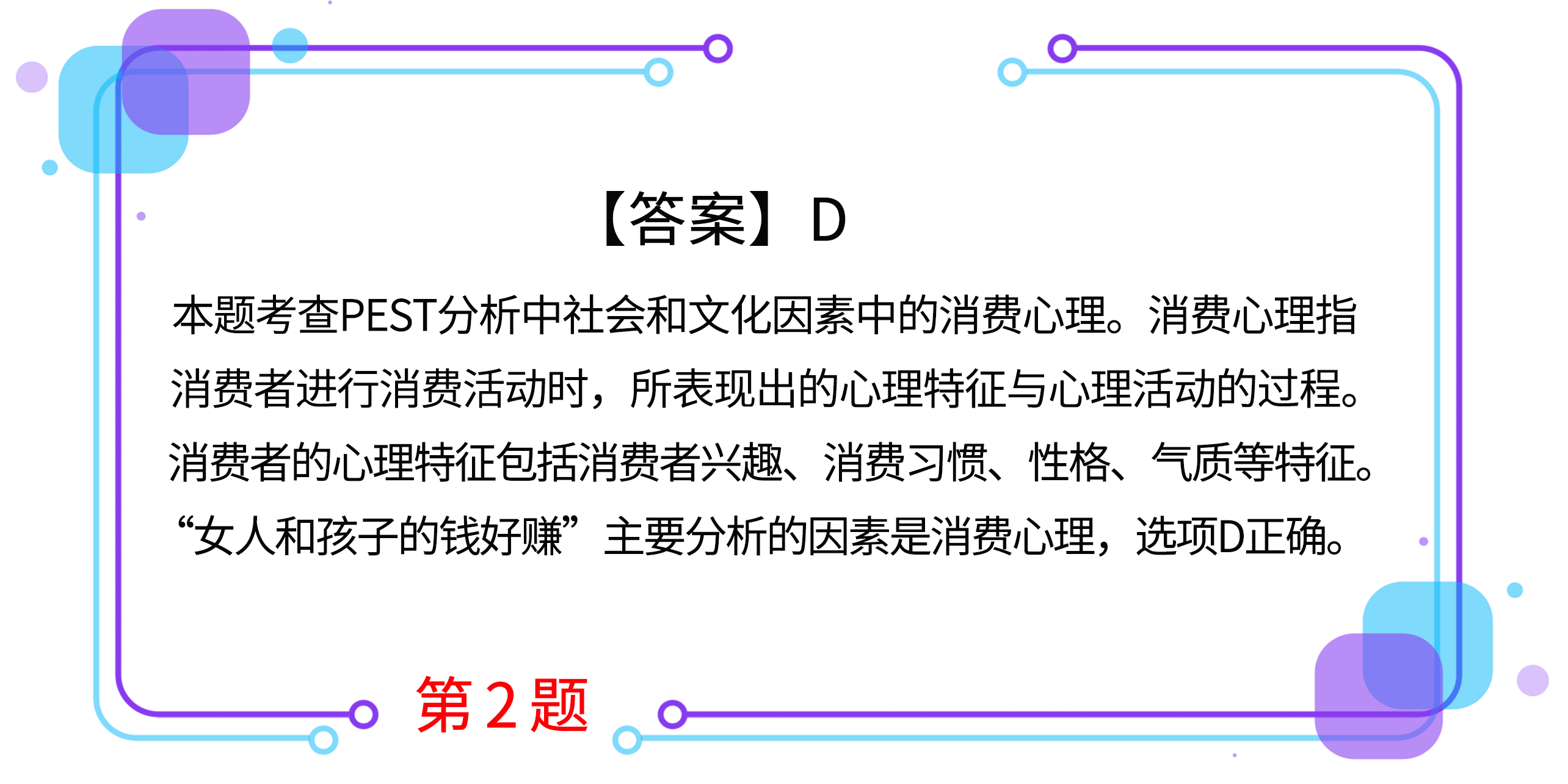 2.商界有句名言“女人和孩子的錢好賺”。從戰(zhàn)略分析角度來看,該說法主要分析的因素是( )。