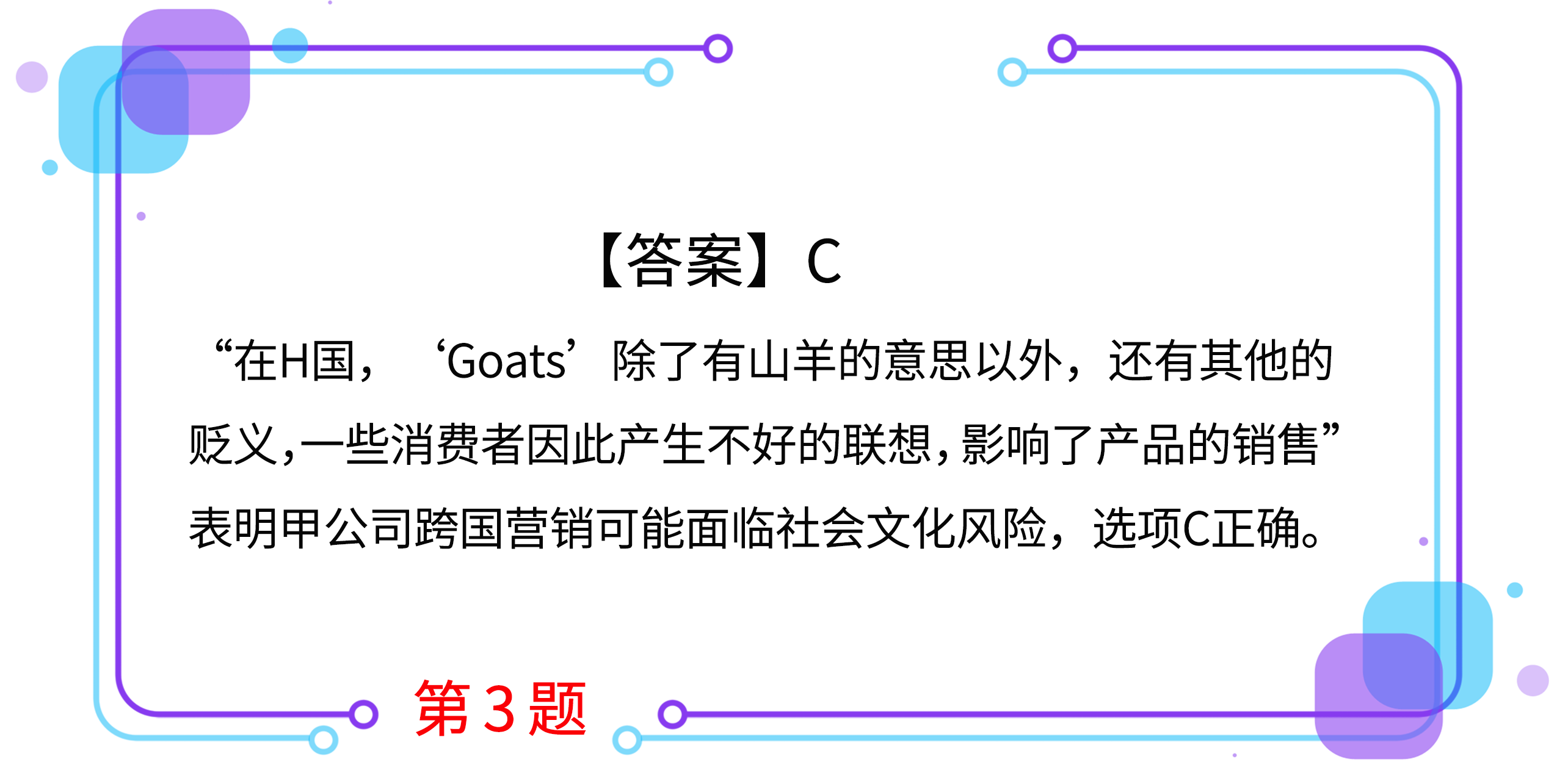 3.我國某紡織生產(chǎn)企業(yè)甲公司向歐洲H國出口“雙羊”牌高檔羊絨被,其英文商標名為“Goats”。該產(chǎn)品雖然質(zhì)量上乘,但在H國一直銷路不佳。甲公司進行詳細調(diào)查后發(fā)現(xiàn),在H國,“Goats”除了有山羊的意思以外,還有其他的貶義,一些消費者因此產(chǎn)生不好的聯(lián)想,影響了產(chǎn)品的銷售。這個案例表明,企業(yè)跨國營銷可能面臨( )。(2016年)