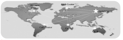 企業(yè)通常將產(chǎn)品開發(fā)職能留在母國,在東道國建立制造和營銷職能。在大多數(shù)的國際化企業(yè)中,企業(yè)總部一般嚴格地控制產(chǎn)品與市場戰(zhàn)略的決策權(quán)。