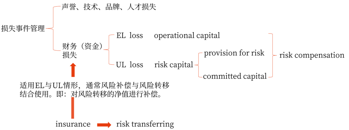 (1)損失融資是為風(fēng)險事件造成的財務(wù)損失融資,是從風(fēng)險理財?shù)慕嵌冗M(jìn)行損失事件的事后管理,是損失事件管理中最有共性,也是最重要的部分。