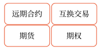 利率互換、貨幣互換、商品互換、其他互換(股權(quán)互換、信用互換、氣候互換(碳互換)和期權(quán)互權(quán)等)。