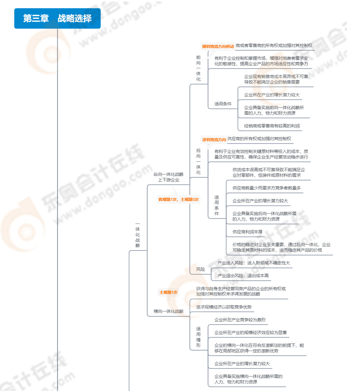 本章通常與實(shí)際案例相結(jié)合,讓考生對(duì)具體問題進(jìn)行分析,并進(jìn)行戰(zhàn)略選擇。因此,在學(xué)習(xí)本章內(nèi)容時(shí),力求整體把握,做到全面復(fù)習(xí)、綜合掌握。