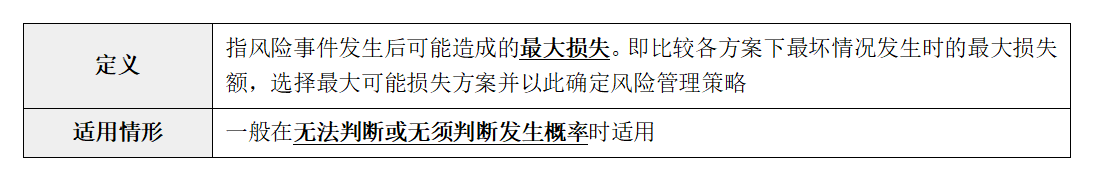 ③期望值。計算并比較各種可選方案下的損失或收益的期望值,選擇最小或最大的損失或收益的期望值作為方案的決策依據(jù)。