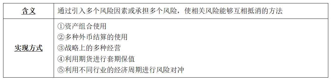 使用風險對沖,必須是風險組合而不能是單一風險,對單一風險只能進行規(guī)避、控制等。