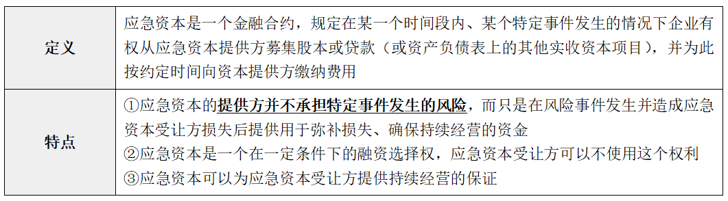 保險與應(yīng)急資本不同,保險是風(fēng)險轉(zhuǎn)移的傳統(tǒng)手段,應(yīng)急資本是風(fēng)險補(bǔ)償?shù)囊环N手段。