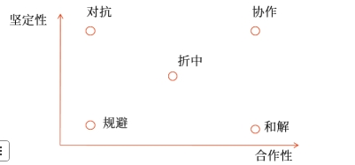 和解 | 不堅(jiān)定+合作 | 設(shè)法滿足對(duì)方的要求,保持或改進(jìn)現(xiàn)存關(guān)系,表現(xiàn)為默認(rèn)和讓步 | 凡事好商量!我忍,我認(rèn)慫 |