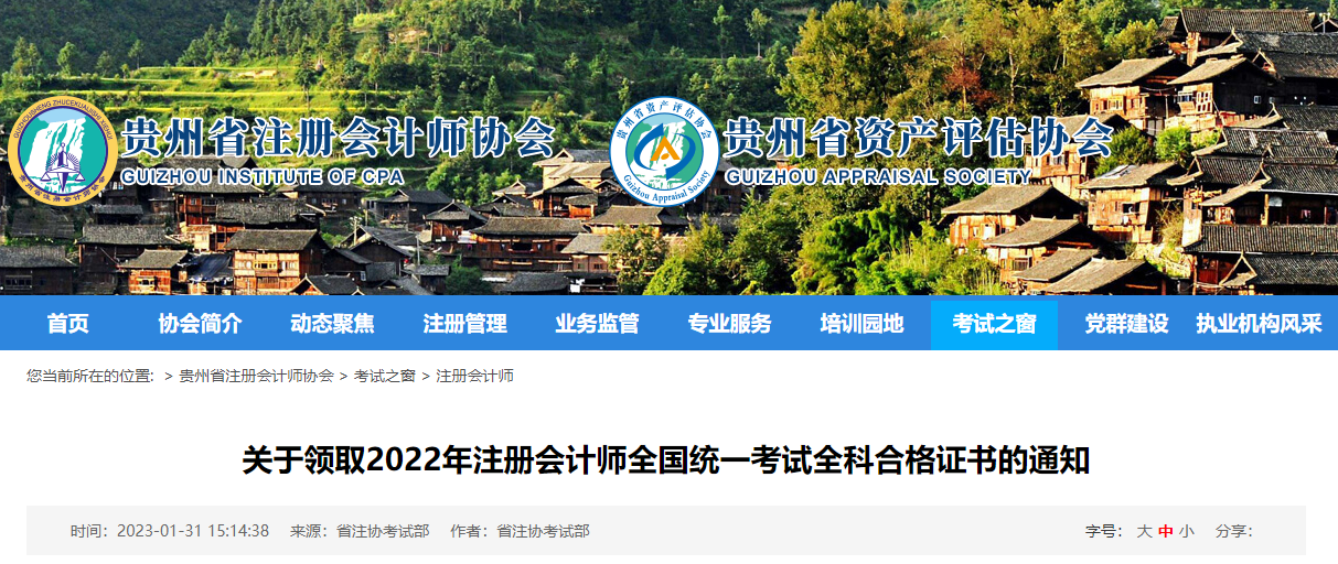貴州省注協(xié)發(fā)布關(guān)于領(lǐng)取2022年注冊(cè)會(huì)計(jì)師考試全科合格證書的通知