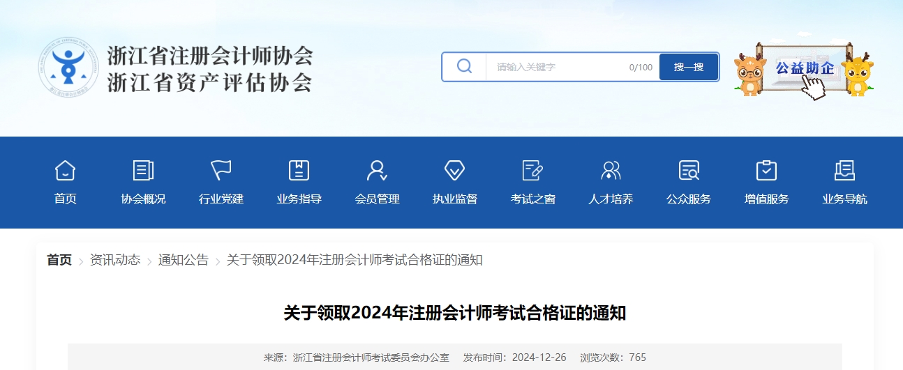 浙江注協(xié)發(fā)布關(guān)于領取2024年注冊會計師考試合格證的通知