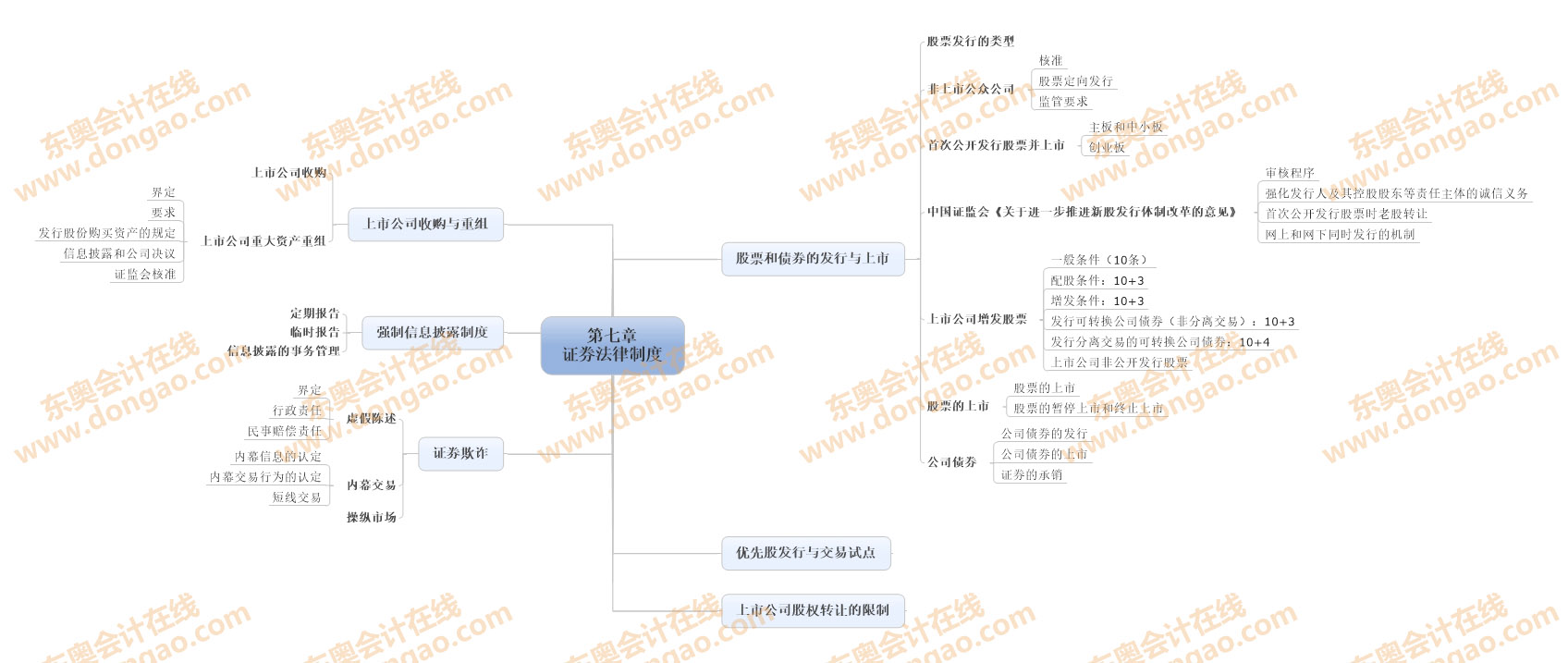 【東奧小編】2014年注冊會計師考試正式進(jìn)入基礎(chǔ)備考階段,注會知識點(diǎn)繁雜細(xì)碎,想要全面掌握注會各科目的知識,需要科學(xué)高效的學(xué)習(xí)方法,思維導(dǎo)圖正是一種非常適合注會復(fù)習(xí)的學(xué)習(xí)方法,正確利用思維導(dǎo)圖,不僅能使自己積極進(jìn)行知識點(diǎn)總結(jié),形成清晰的思路,還能對知識點(diǎn)進(jìn)行快速查漏補(bǔ)缺。以下是2014《經(jīng)濟(jì)法》第七章證券法思維導(dǎo)圖: