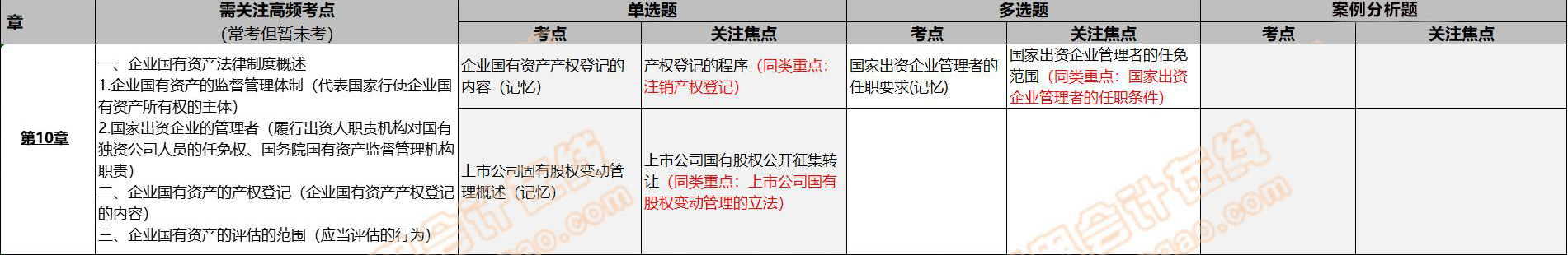 本章考點(diǎn)不多但大部分考點(diǎn)都需要背記,復(fù)習(xí)本章需要5個(gè)小時(shí)左右。企業(yè)國有資產(chǎn)法律制度概述屬于高頻考點(diǎn),其中企業(yè)國有資產(chǎn)的監(jiān)督管理體制和國家出資企業(yè)的管理者屬于每年都會(huì)考查到的知識(shí)點(diǎn),建議考生在臨考前仔細(xì)看2遍本章內(nèi)容。