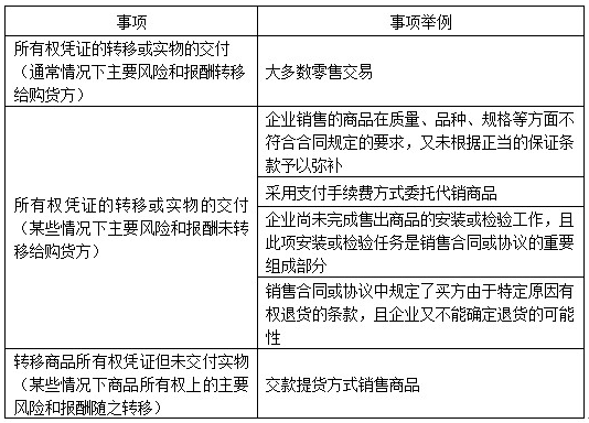 (1) 企業(yè)已將商品所有權(quán)上的主要風(fēng)險(xiǎn)和報(bào)酬轉(zhuǎn)移給購貨方