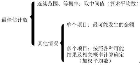 預(yù)計(jì)負(fù)債應(yīng)當(dāng)按照履行相關(guān)現(xiàn)時(shí)義務(wù)所需支出的最佳估計(jì)數(shù)進(jìn)行初始計(jì)量,圖示如下: