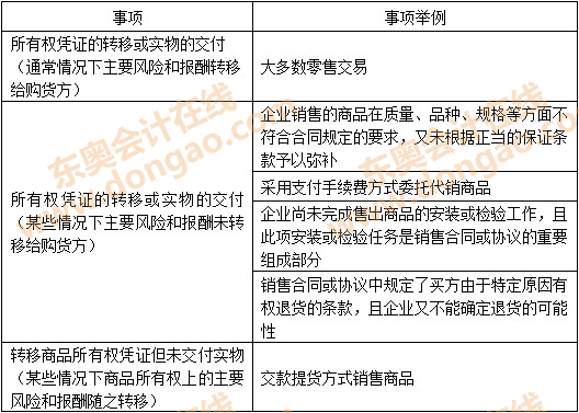 (1) 企業(yè)已將商品所有權(quán)上的主要風(fēng)險(xiǎn)和報(bào)酬轉(zhuǎn)移給購(gòu)貨方