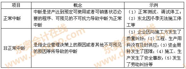 符合資本化條件的資產(chǎn)在購(gòu)建或者生產(chǎn)過(guò)程中發(fā)生非正常中斷、且中斷時(shí)間連續(xù)超過(guò)3個(gè)月的,應(yīng)當(dāng)暫停借款費(fèi)用的資本化。在中斷期間所發(fā)生的借款費(fèi)用,應(yīng)當(dāng)計(jì)入當(dāng)期損益,直至購(gòu)建或者生產(chǎn)活動(dòng)重新開(kāi)始。但是,如果中斷是使所購(gòu)建或者生產(chǎn)的符合資本化條件的資產(chǎn)達(dá)到預(yù)定可使用或者可銷售狀態(tài)必要的程序,所發(fā)生的借款費(fèi)用應(yīng)當(dāng)繼續(xù)資本化。