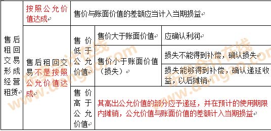 售后租回交易認(rèn)定為經(jīng)營(yíng)租賃的,應(yīng)當(dāng)分別情況處理:在有確鑿證據(jù)表明售后租回交易是按照公允價(jià)值達(dá)成的, 售價(jià)與賬面價(jià)值的差額應(yīng)當(dāng)計(jì)入當(dāng)期損益。如果售后租回交易不是按照公允價(jià)值達(dá)成的,有關(guān)損益應(yīng)于當(dāng)期確認(rèn);但若該損失將由低于市價(jià)的未來(lái)付款額補(bǔ)償?shù)?應(yīng)將其遞延,并按與確認(rèn)租金費(fèi)用相一致的方法分?jǐn)傆陬A(yù)計(jì)的資產(chǎn)使用期限內(nèi);售價(jià)高于公允價(jià)值的,其高出公允價(jià)值的部分應(yīng)予遞延,并在預(yù)計(jì)的使用期限內(nèi)攤銷。