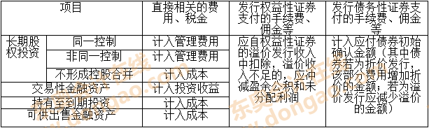 【提示】與投資有關(guān)的相關(guān)費用會計處理如下表所示: