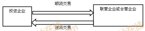 (3)投資企業(yè)在采用權(quán)益法確認(rèn)投資收益時,應(yīng)抵消與其聯(lián)營企業(yè)及合營企業(yè)之間發(fā)生的未實(shí)現(xiàn)內(nèi)部交易損益。該未實(shí)現(xiàn)內(nèi)部交易既包括順流交易也包括逆流交易。順流交易和逆流交易圖示如下: