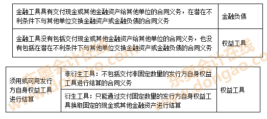 權(quán)益工具與金融負(fù)債的區(qū)分如下表所示: