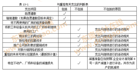 屬于重組的事項(xiàng)主要包括: