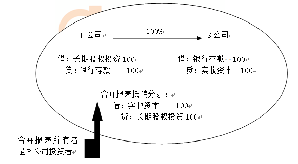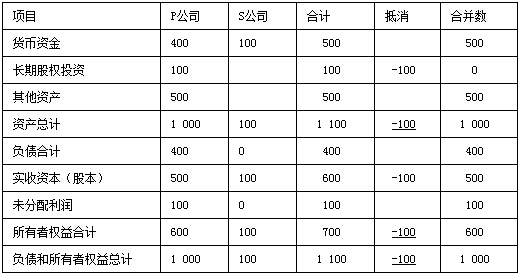 、貾公司投出100萬元貨幣資金形成S公司,作為企業(yè)集團(tuán)整體,相當(dāng)于貨幣資金100萬元由一個(gè)賬戶轉(zhuǎn)入另一個(gè)賬戶,P公司個(gè)別財(cái)務(wù)報(bào)表中的長期股權(quán)投資和S公司個(gè)別財(cái)務(wù)報(bào)表中的實(shí)收資本不應(yīng)存在,應(yīng)予抵消。