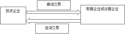 (3)投資企業(yè)在采用權(quán)益法確認(rèn)投資收益時(shí),應(yīng)抵消與其聯(lián)營企業(yè)及合營企業(yè)之間發(fā)生的未實(shí)現(xiàn)內(nèi)部交易損益。該未實(shí)現(xiàn)內(nèi)部交易既包括順流交易也包括逆流交易。順流交易和逆流交易圖示如下: