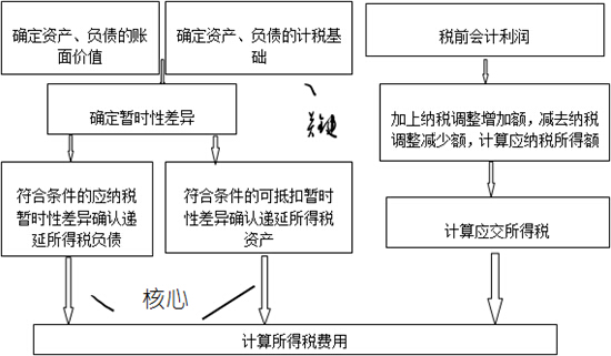 所得稅會(huì)計(jì)采用資產(chǎn)負(fù)債表債務(wù)法核算所得稅,資產(chǎn)負(fù)債表債務(wù)法是從資產(chǎn)負(fù)債表出發(fā),通過比較資產(chǎn)負(fù)債表上列示的資產(chǎn)、負(fù)債按照企業(yè)會(huì)計(jì)準(zhǔn)則規(guī)定確定的賬面價(jià)值與按照稅法規(guī)定確定的計(jì)稅基礎(chǔ),對(duì)于兩者之間的差異分別應(yīng)納稅暫時(shí)性差異與可抵扣暫時(shí)性差異,確認(rèn)相關(guān)的遞延所得稅負(fù)債與遞延所得稅資產(chǎn),并在此基礎(chǔ)上確定每一期間利潤(rùn)表中的所得稅費(fèi)用。