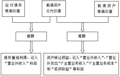 以非現(xiàn)金資產(chǎn)清償債務(wù)的,債務(wù)人應(yīng)當(dāng)將重組債務(wù)的賬面價值與轉(zhuǎn)讓的非現(xiàn)金資產(chǎn)公允價值之間的差額,計入當(dāng)期損益。轉(zhuǎn)讓的非現(xiàn)金資產(chǎn)公允價值與其賬面價值之間的差額,計入當(dāng)期損益。